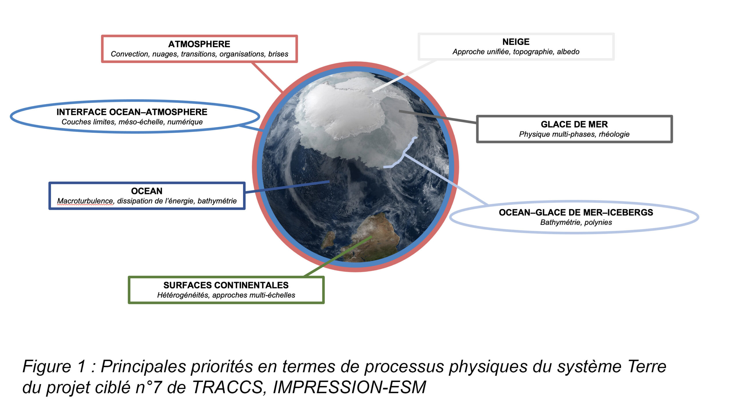 TRACCS-PC7-IMPRESSION-ESM : Améliorer le cœur physique des modèles du système Terre IMPRESSION-ESM vise à améliorer la représentation de la physique du climat dans les deux modèles de système Terre français, en travaillant sur les processus physiques déjà traités et en ajoutant ceux encore manquants. Les objectifs sont d’améliorer notre compréhension du système climatique, accroître la confiance dans les projections du climat futur, fournir des informations climatiques de haute qualité, et former la prochaine génération de professionnels du climat.
